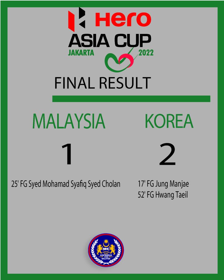 Malaysia vs Korea Final. Asia Cup Hockey. Malaysia ke pentas final Piala Asia 2022 selepas mencatat kemenangan 5-0 ke atas Jepun dalam aksi terakhir pusingan Super 4 Piala Asia 2022.